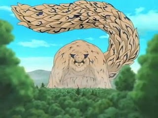 Sobre o Bijuu - A lendária gigantesca Raposa Dêmonio de 9 Caudas. O mais poderoso entre os 9 Bijuu's, possui uma quantidade de chakra considerada infinita. Regenera rapidamente seu Jinchuuriki, porém essa habilidade encurta a vida do mesmo. Suas caudas já causam grande destruição, e sua habilidade suprema de expelir um chakra denso e terrível, convertendo em uma esfera, engolindo-a, em seguida dispara uma rajada de energia que oblitera tudo no alcance.