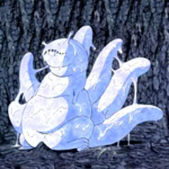 Sobre o Bijuu - A lendária gigantesca Raposa Dêmonio de 9 Caudas. O mais poderoso entre os 9 Bijuu's, possui uma quantidade de chakra considerada infinita. Regenera rapidamente seu Jinchuuriki, porém essa habilidade encurta a vida do mesmo. Suas caudas já causam grande destruição, e sua habilidade suprema de expelir um chakra denso e terrível, convertendo em uma esfera, engolindo-a, em seguida dispara uma rajada de energia que oblitera tudo no alcance.